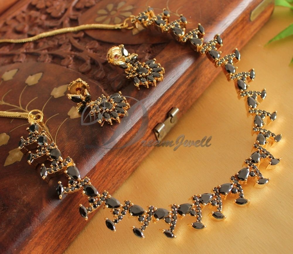 Gold tone AD Black Necklace Set-dj16847