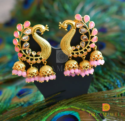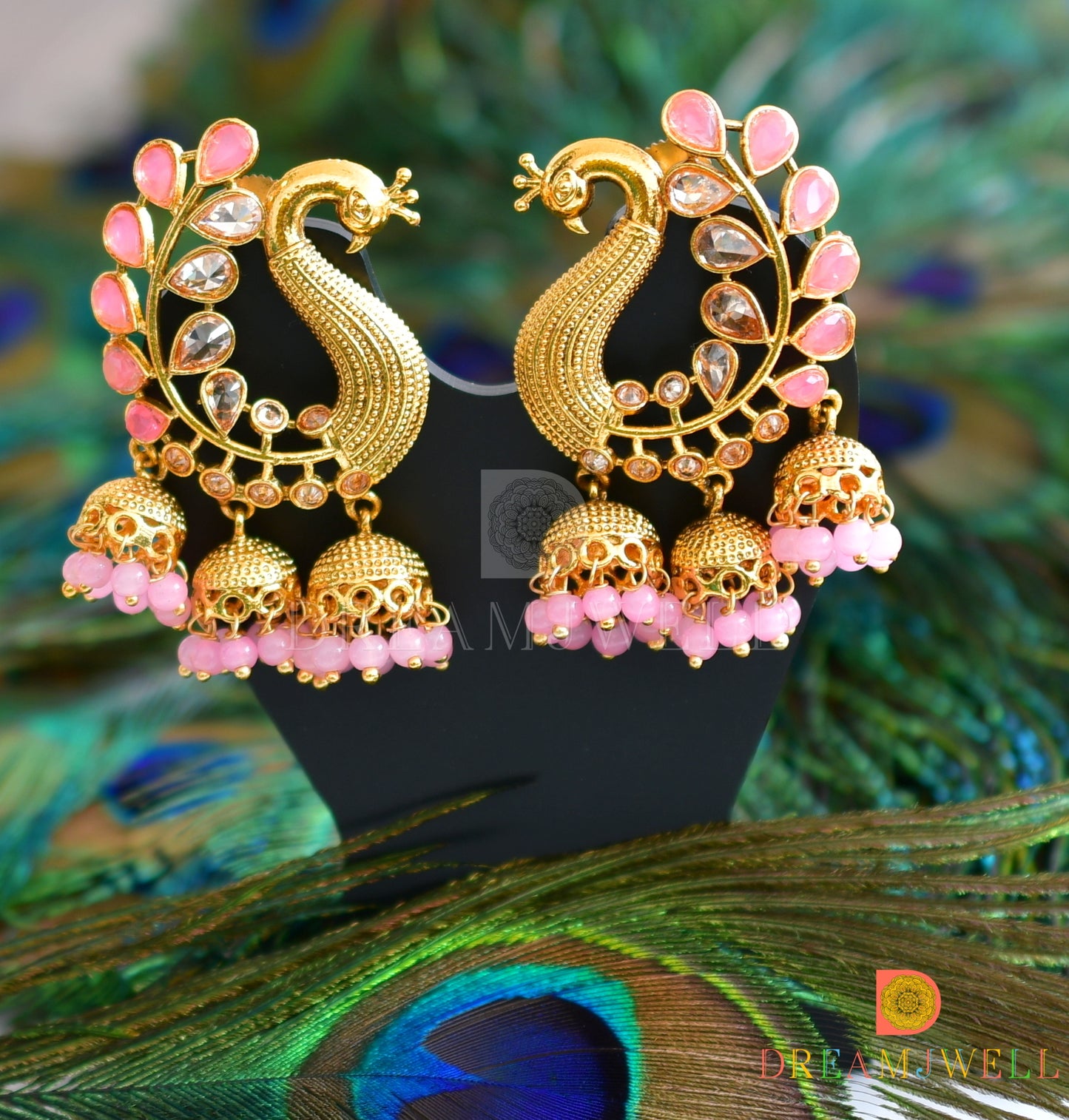 Antique finish Lotus pink designer party wear earrings dj-15489