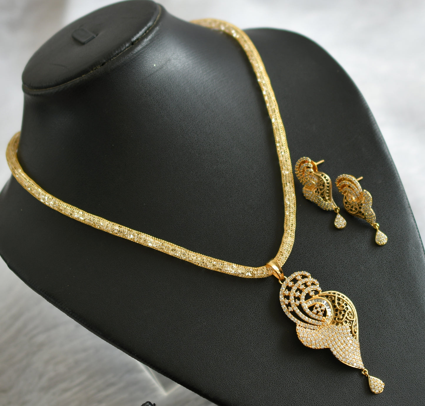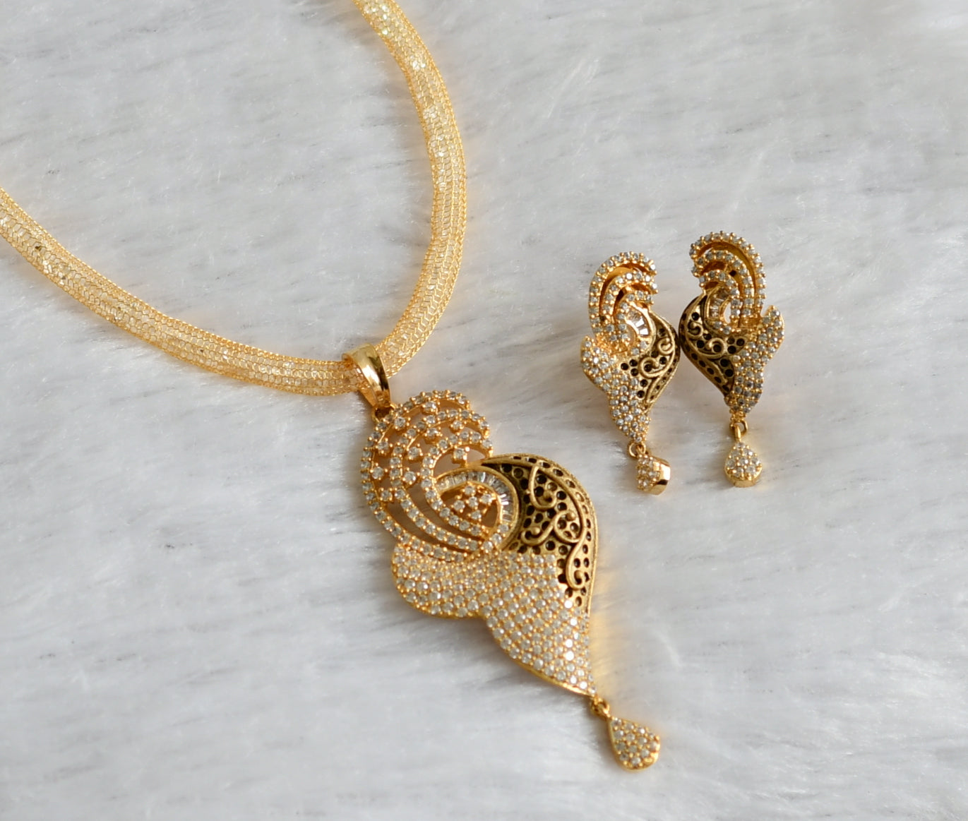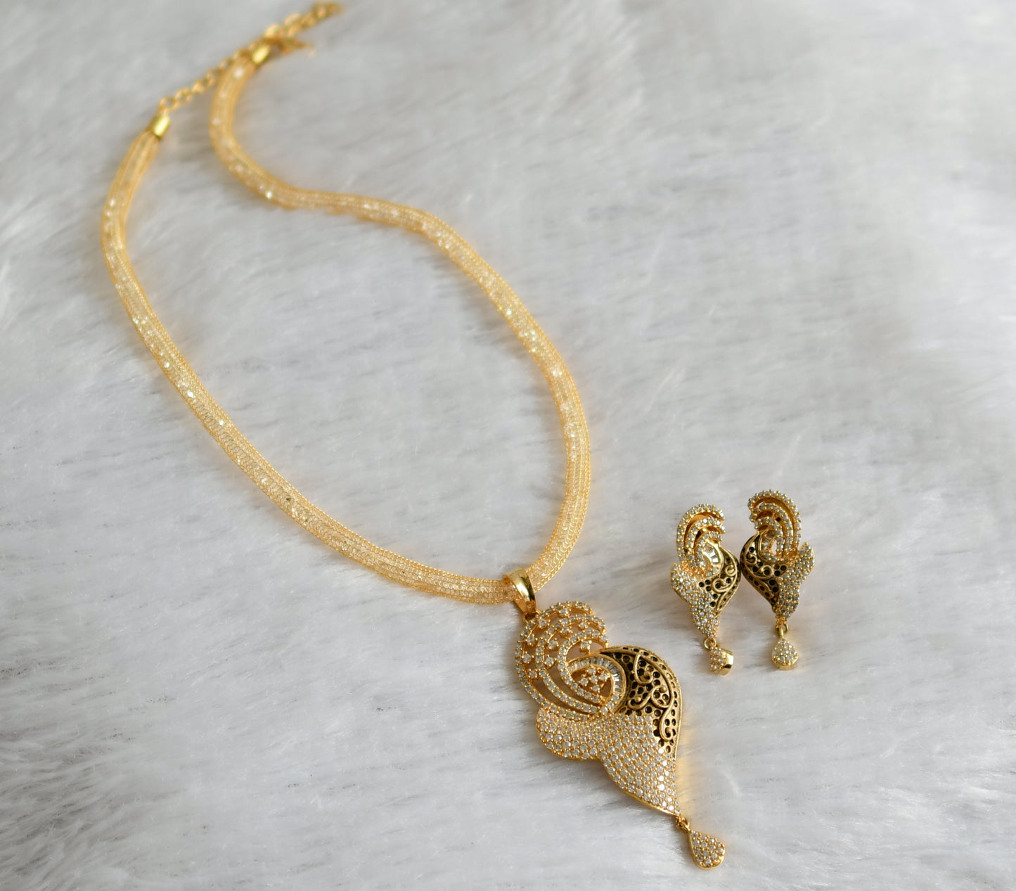Antique Gold tone Cz Pendant with chain Set-dj09058