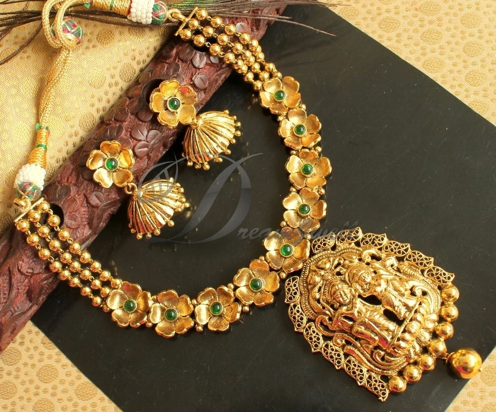 Antique gold Green Radhe-Krishna Necklace Set DJ22177