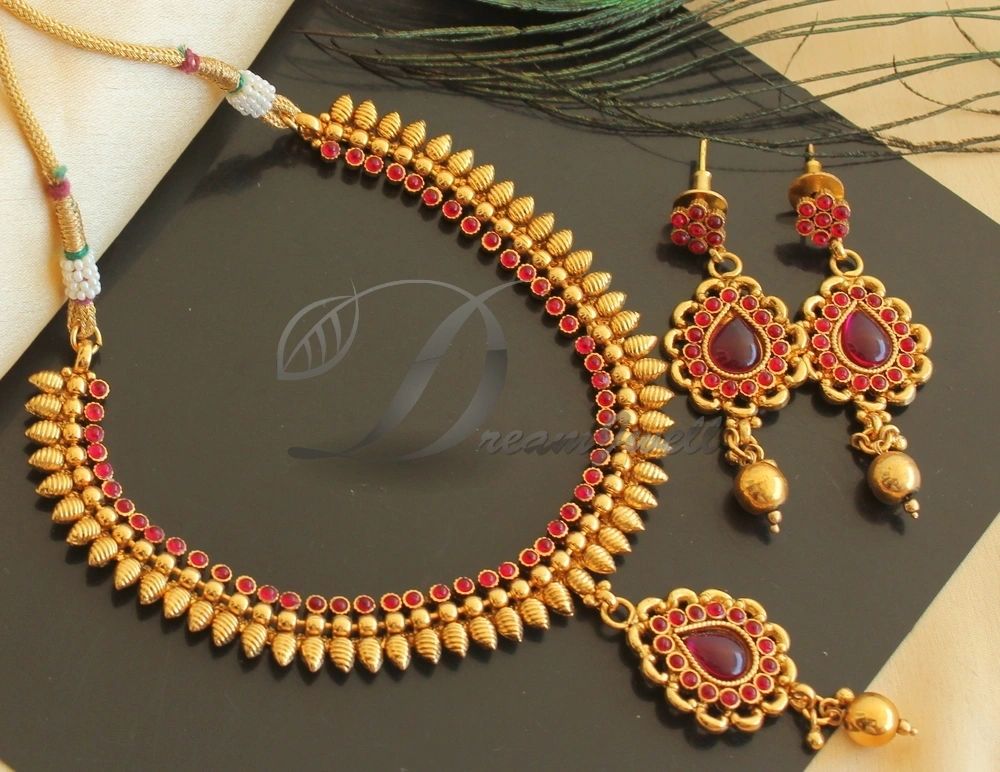 The product includes A pair of Earrings - Length : 4 cm , Width : 2 cm A Necklace - Length : 13 cm Earrings type - Push back Necklace comes with a back dori .
