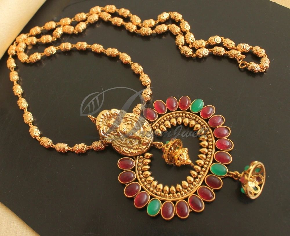Antique gold tone Kemp-green Lakshmi bali chain DJ25104