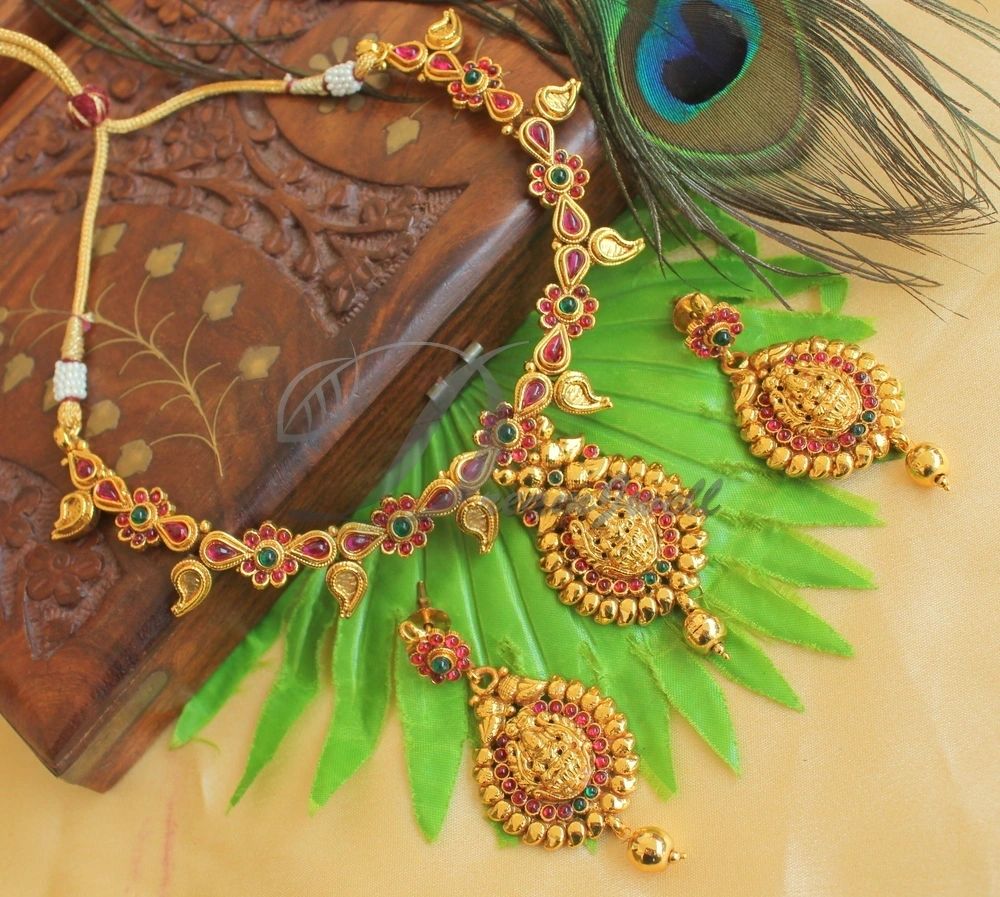 Antique gold tone Kemp-green Lakshmi Necklace Set DJ21466