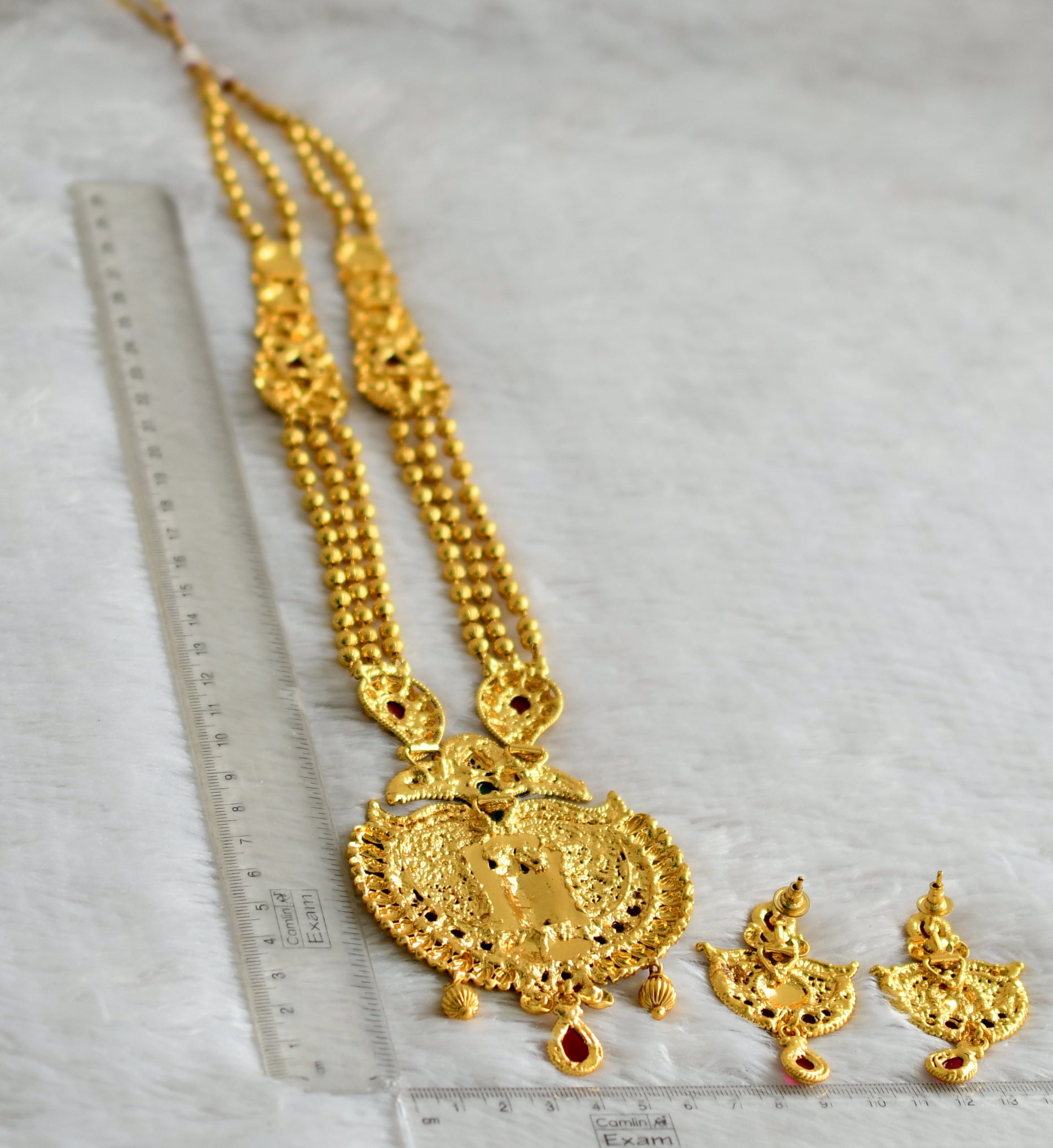 The product includes a haar and a pair of earrings