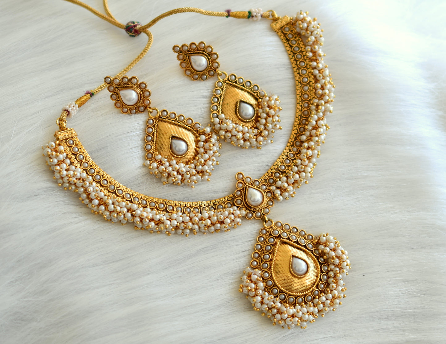 Antique pearl cluster necklace set dj-07494