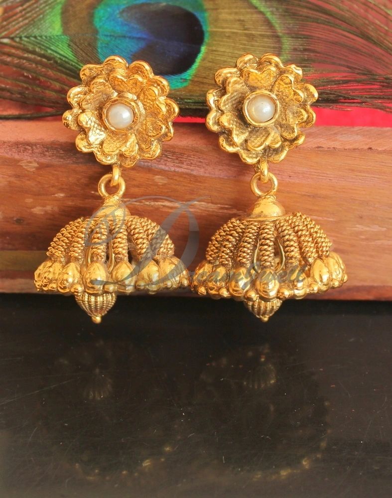 Antique gold tone Pearl Flower Jhumkka DJ24282