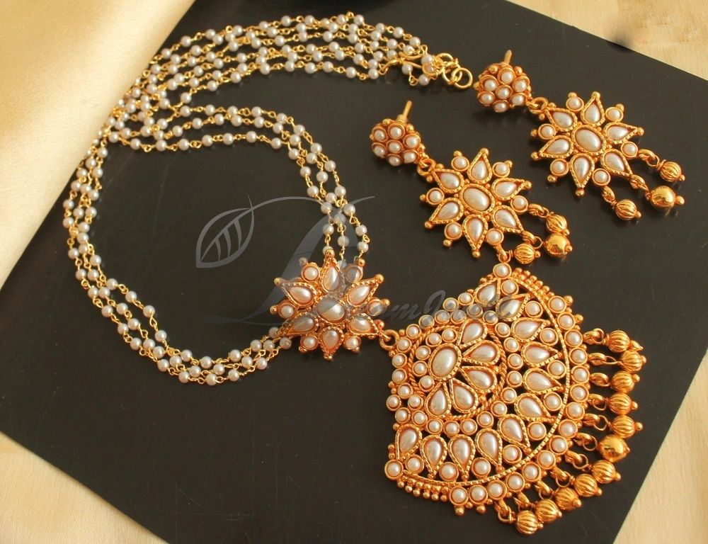 Antique gold tone Pearl Flower Pendant with Pearl chain set DJ25127