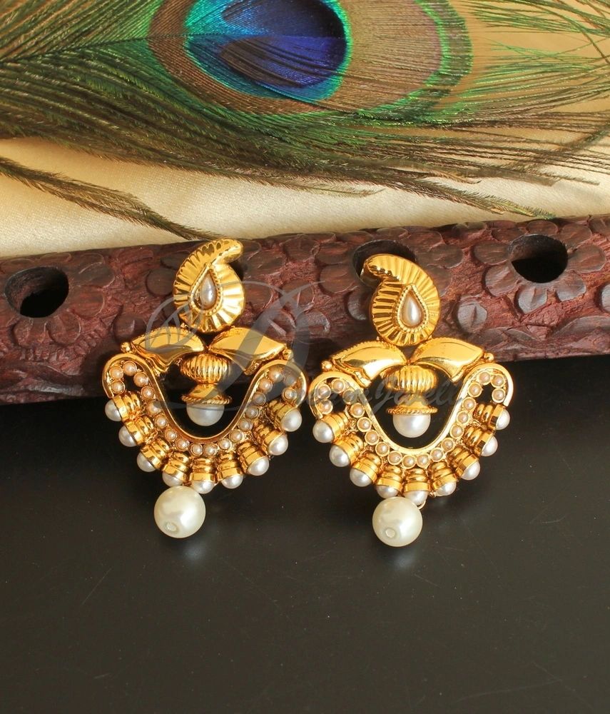 Antique gold tone Pearl Mango Bali Earrings DJ25133
