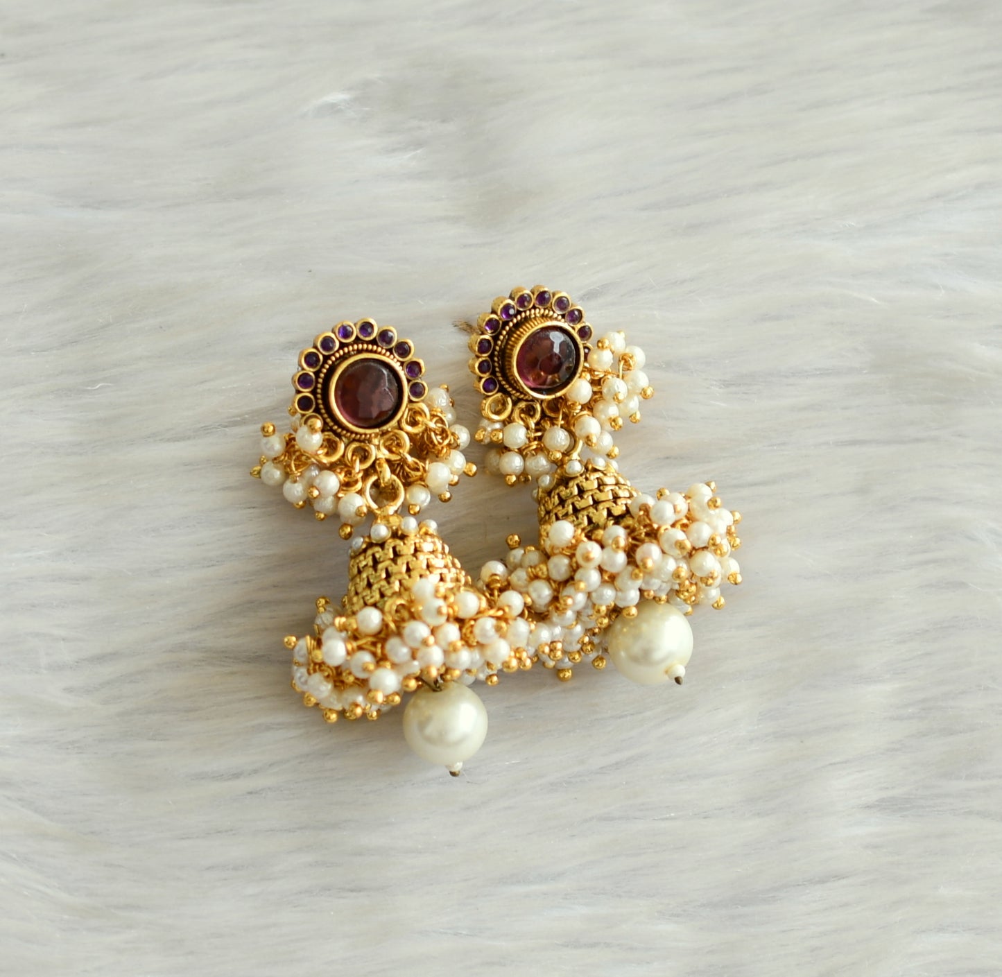Antique gold tone purple pearl cluster necklace set dj-13546