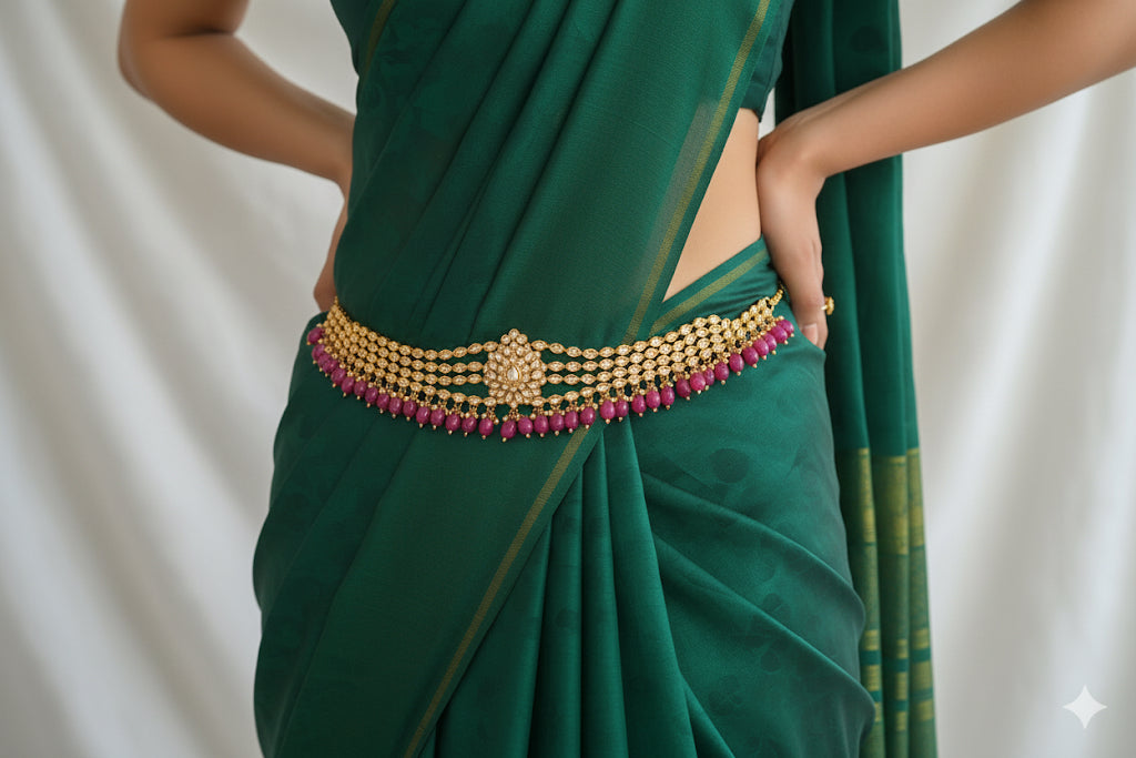 Antique ruby beaded polki stone waist band dj-23105