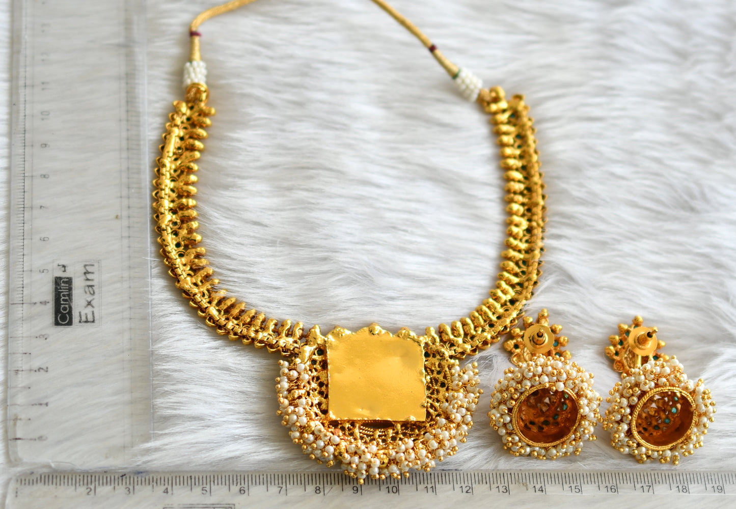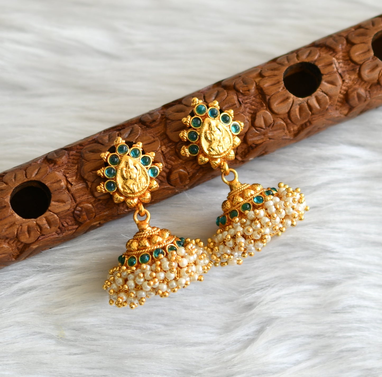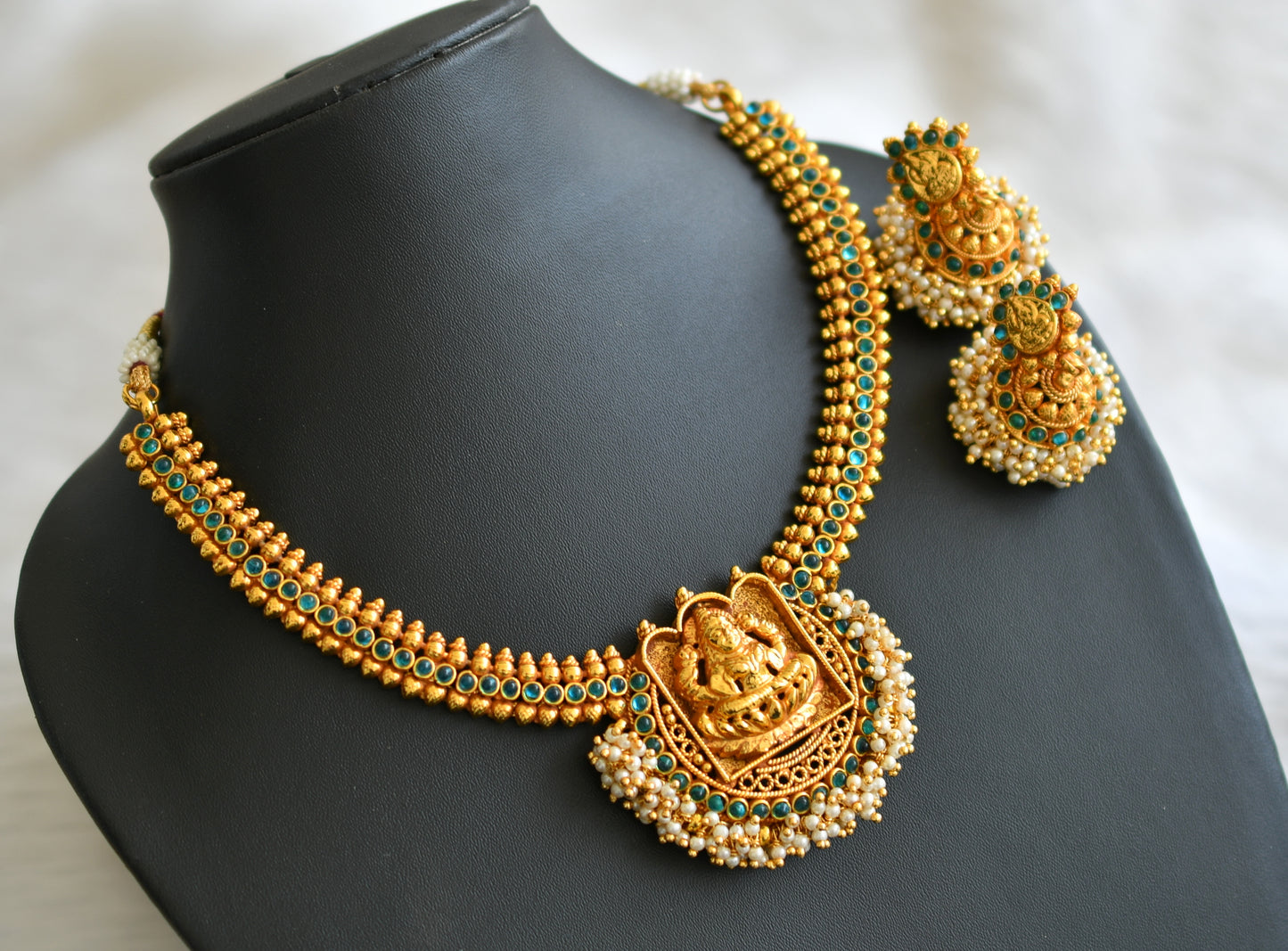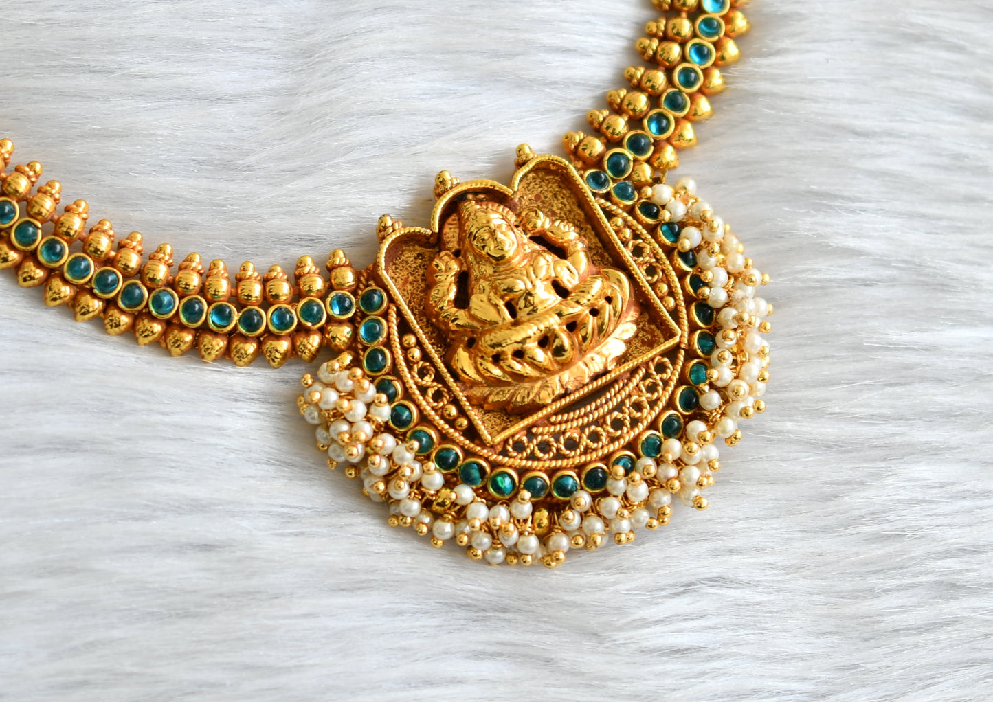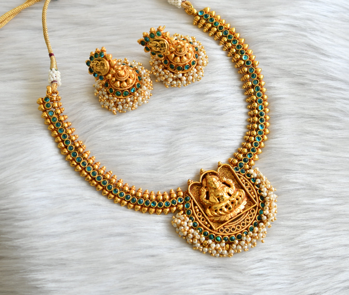 Antique sky blue pearl cluster lakshmi necklace set dj-07488