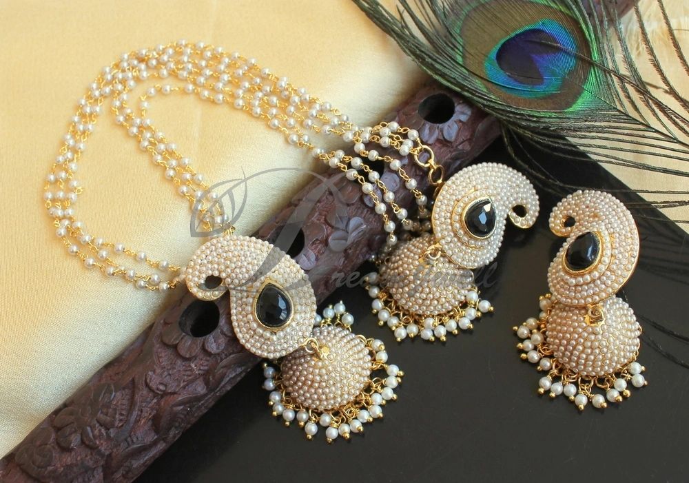Beautiful Black Pearl Mango Jhumkka Pendant Set DJ23603