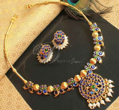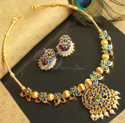 Beautiful Blue-green Mango Designer Necklace Set DJ21769