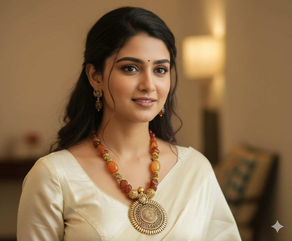 Antique Brown Onyx Bead Round Necklace Set DJ20683