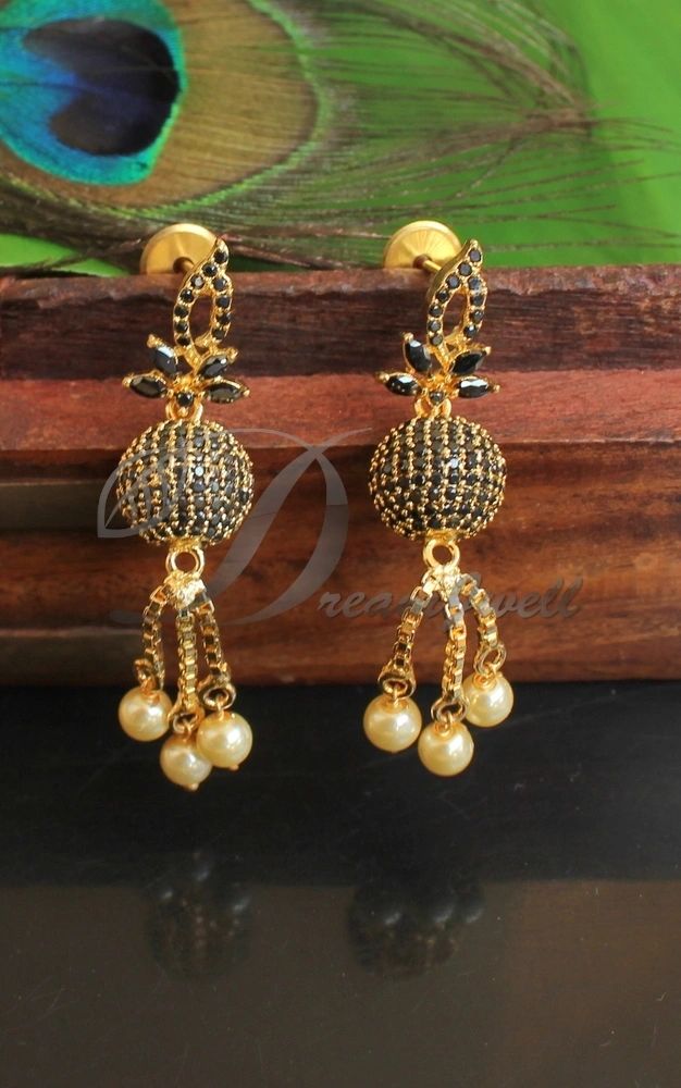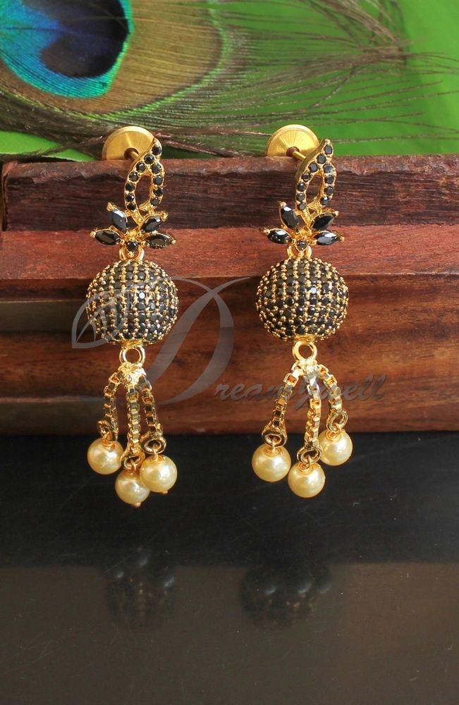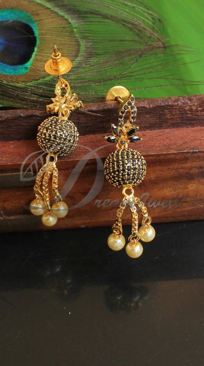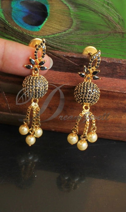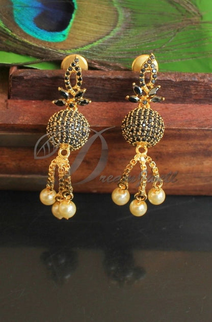 Gold tone Cz Black ball pearl Earrings DJ24030