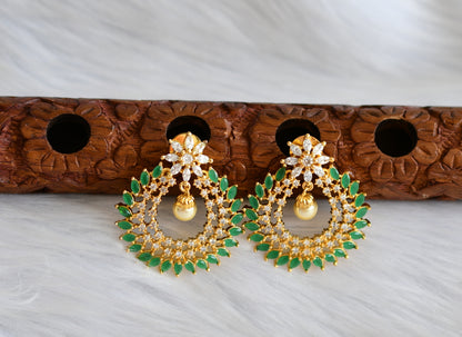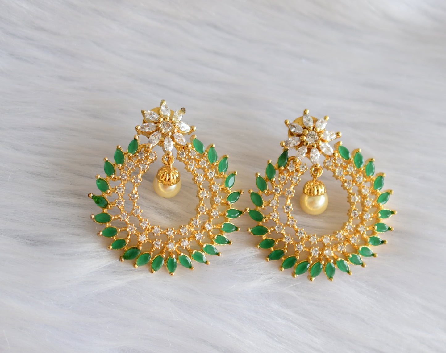 Gold tone cz emerald-white flower bali earrings dj-19488