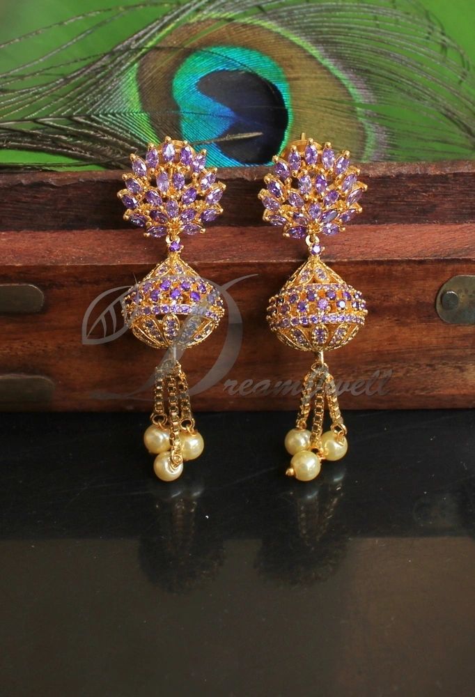 Gold tone Cz Purple ball pearl Earrings DJ24038