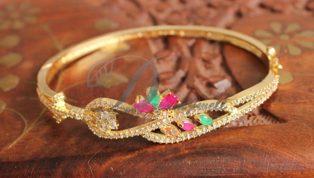 Gold tone Cz Ruby-emerald Bracelet DJ18734