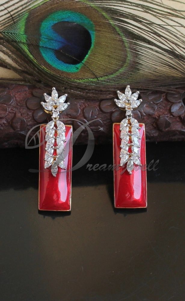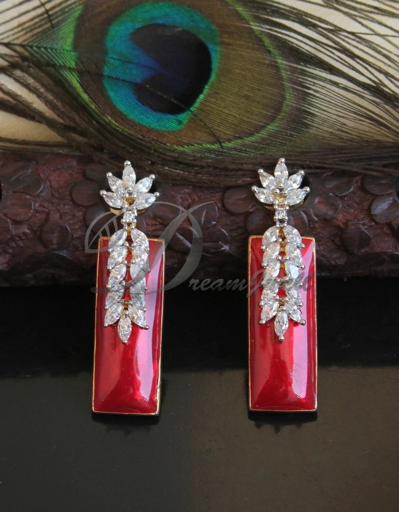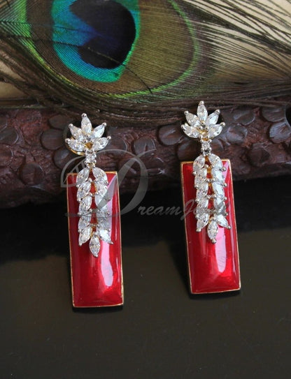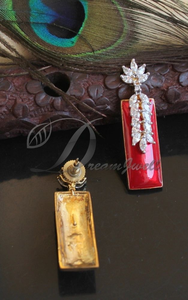 Beautiful Cz White-red Designer Earrings DJ23353