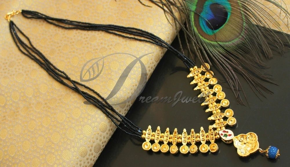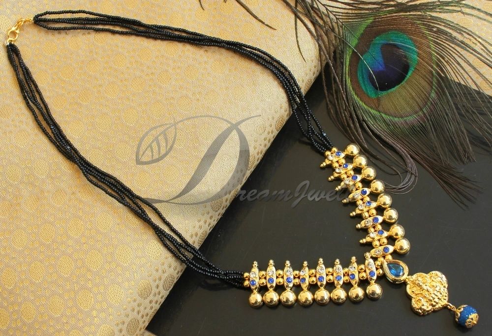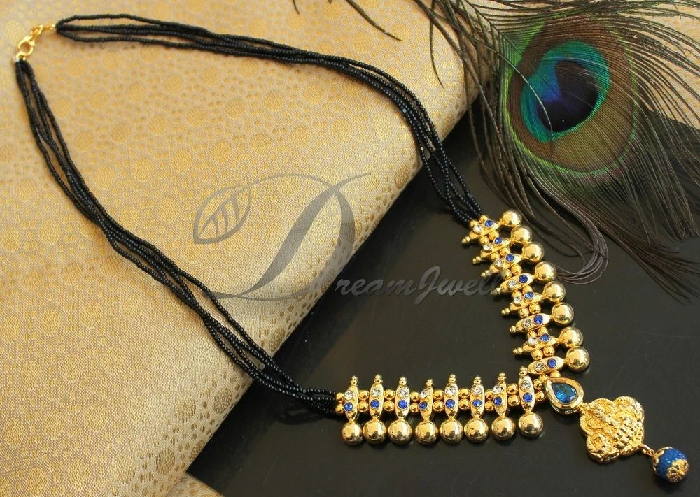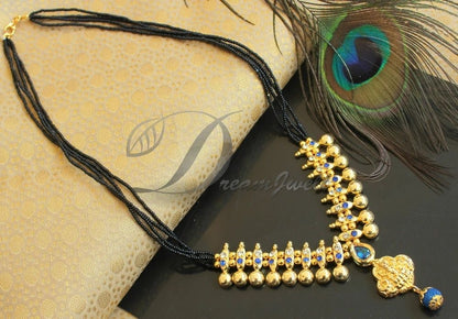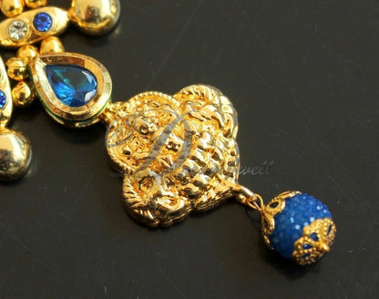 Gold tone Blue Black beaded Lakshmi Necklace DJ21644