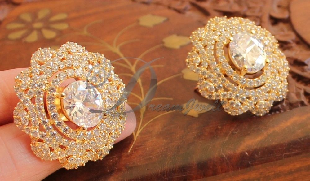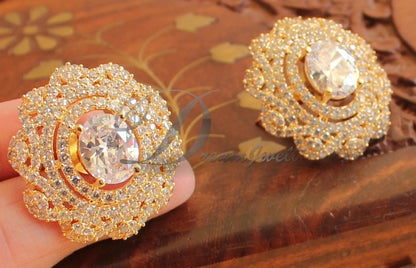 Gold tone Cz Big White Stud/Earrings DJ17998