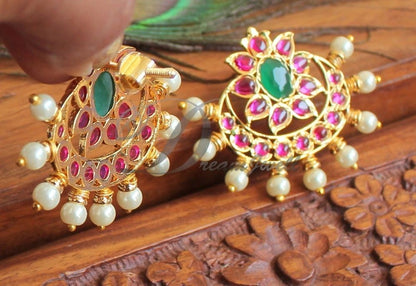 The product includes A pair of Earrings - Length : 4 cm , Width : 4.5 cm Earrings type - Bombay screw .