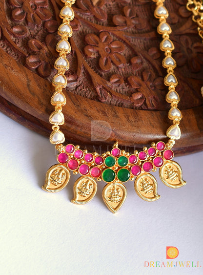 Gold Tone Ruby-emerald Lakshmi Mango Coin Necklace dj-22972
