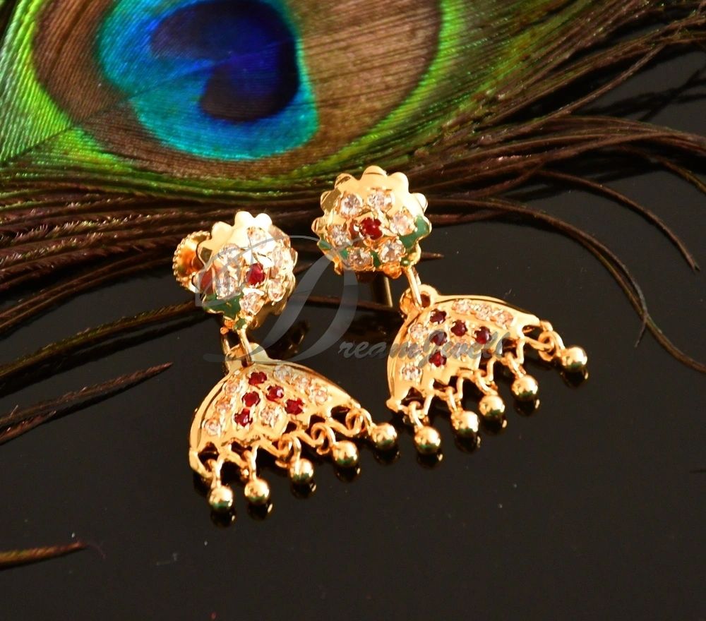 Gold Tone Cz Ruby South Indian style Screw back Earrings DJ31566