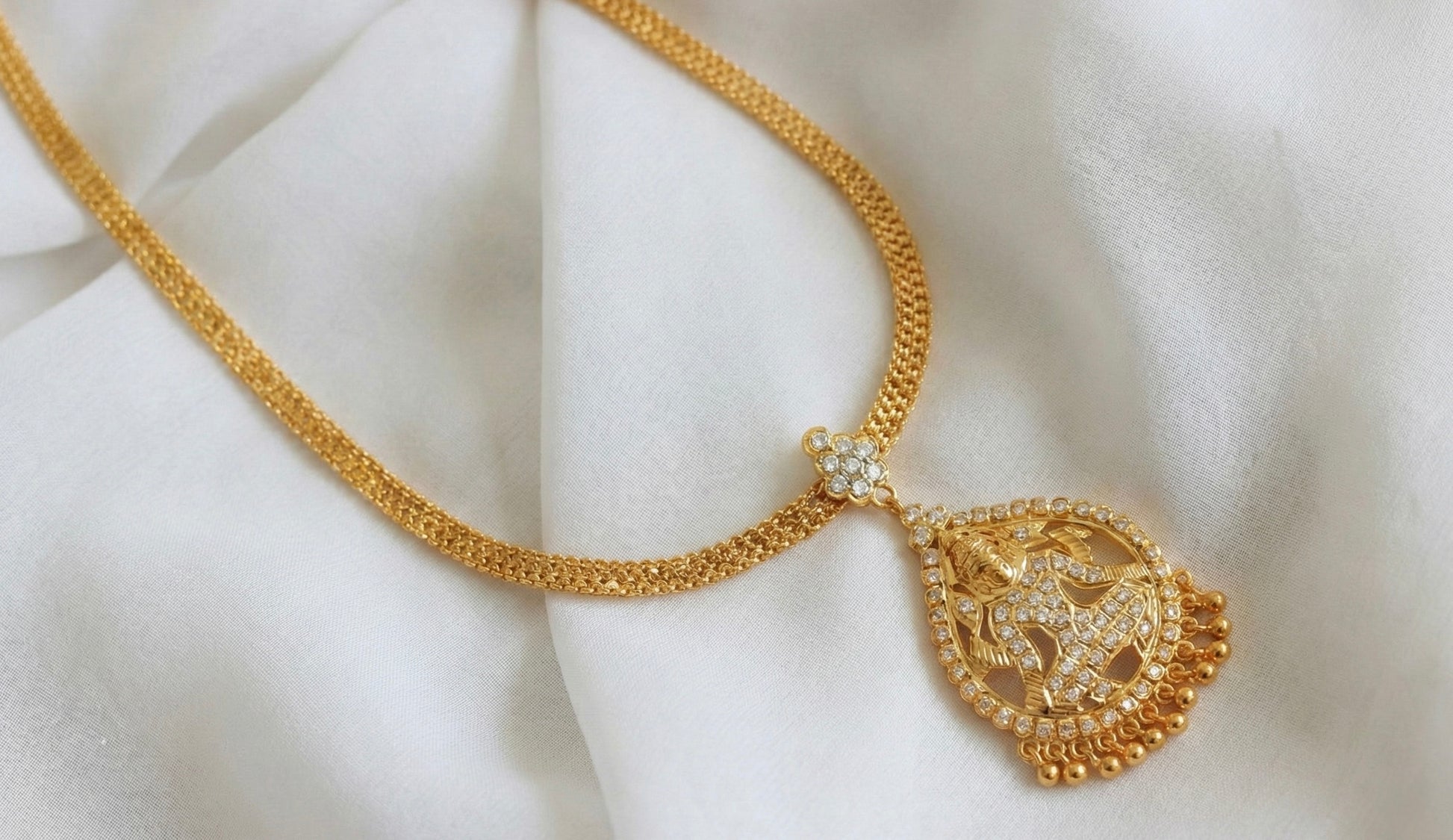 Gold Tone Cz White Lakshmi South Indian Style Necklace/Attigai DJ27247