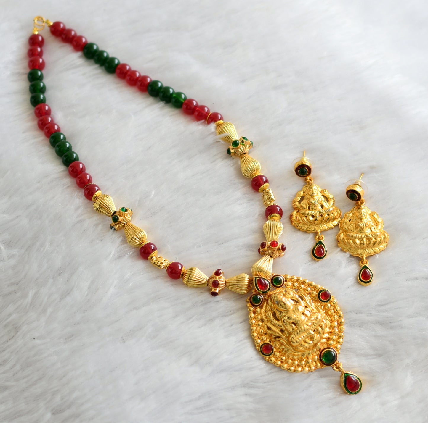 Gold Tone Maroon-green Beaded Lakshmi Set DJ03691