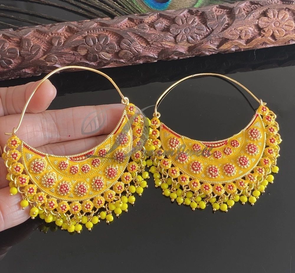 Gold Tone Yellow Big Meenakari Hoop Earrings DJ32224