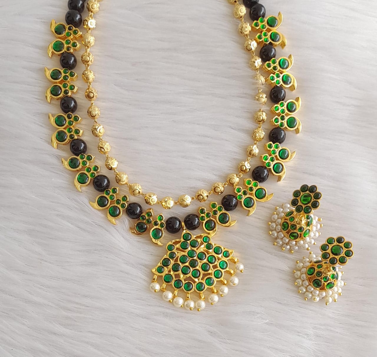 Gold tone Green-black Mango Pearl double layer Necklace Set DJ23282