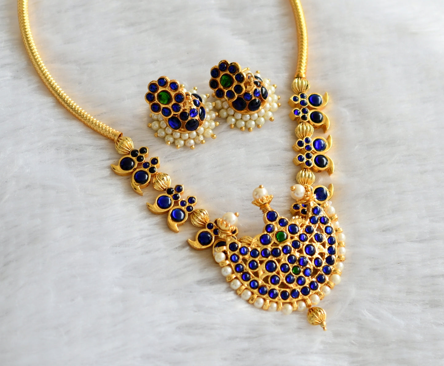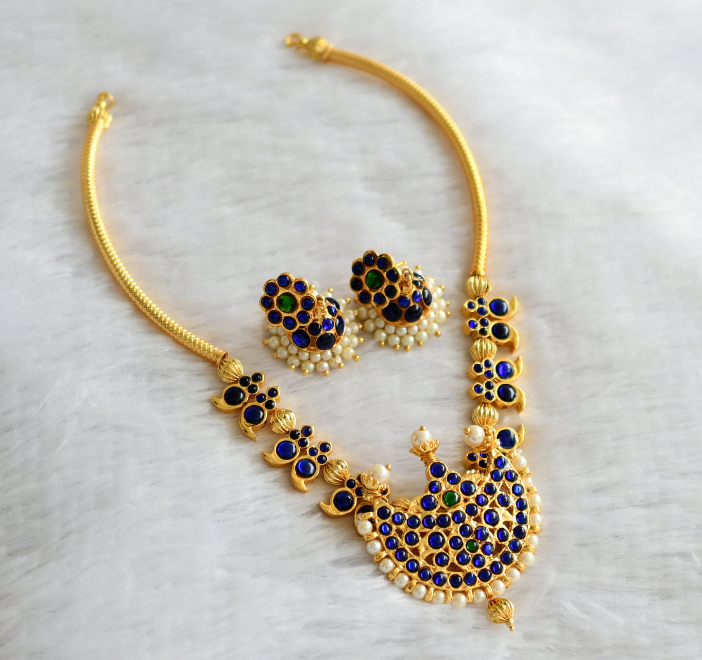 Gold tone Green-blue Moon Temple Necklace Set DJ18143