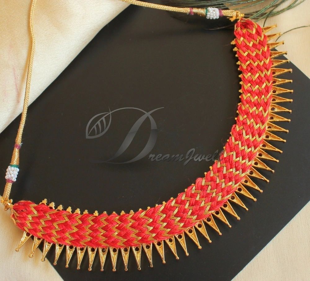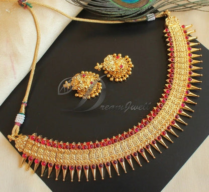 Gold tone Hand Stitched Silk Thread Kemp Stone Necklace Set DJ23738