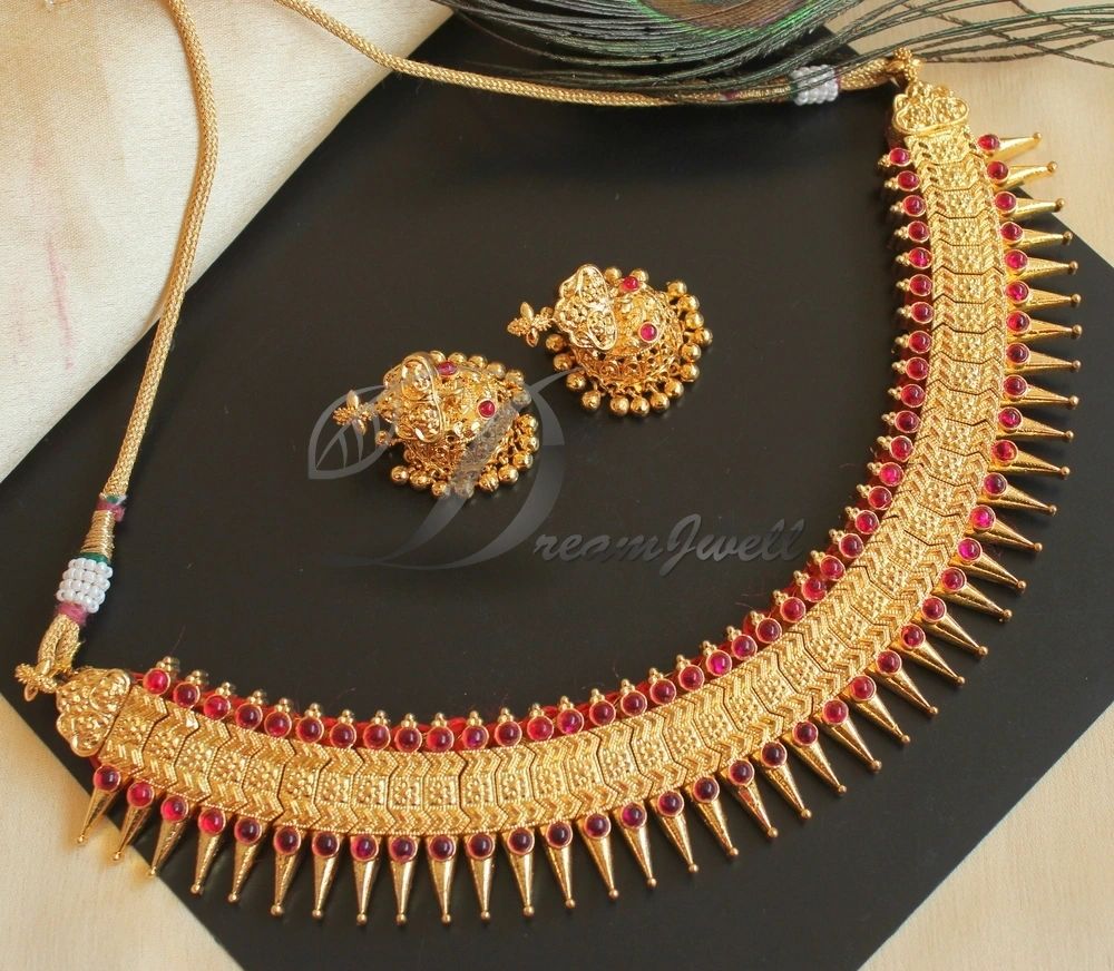 The product includes A pair of Earrings - Length : 3.5 cm , Width : 1.5 cm A Necklace - Length : 12 cm Earrings type - Push back Necklace comes with a dori .