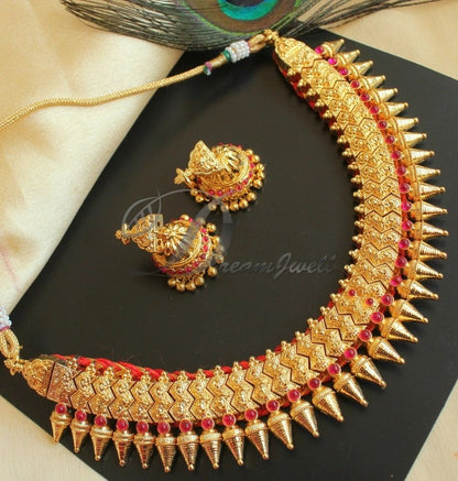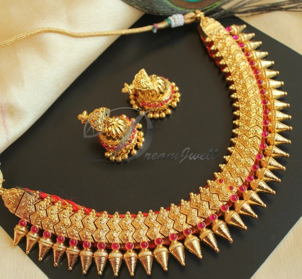 The product includes A pair of Earrings - Length : 3.5 cm , Width : 1.5 cm A Necklace - Length : 12 cm Earrings type - Push back Necklace comes with a dori .