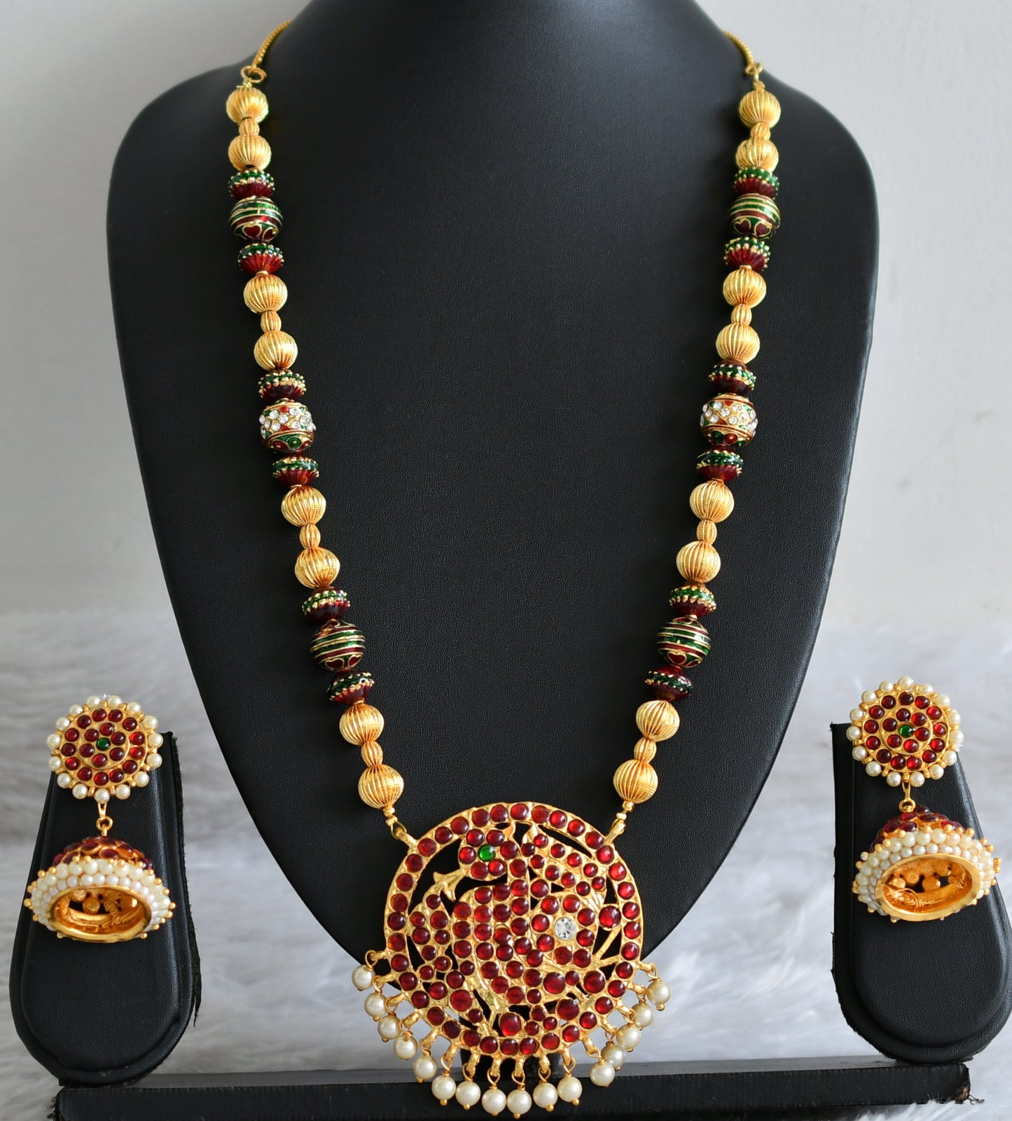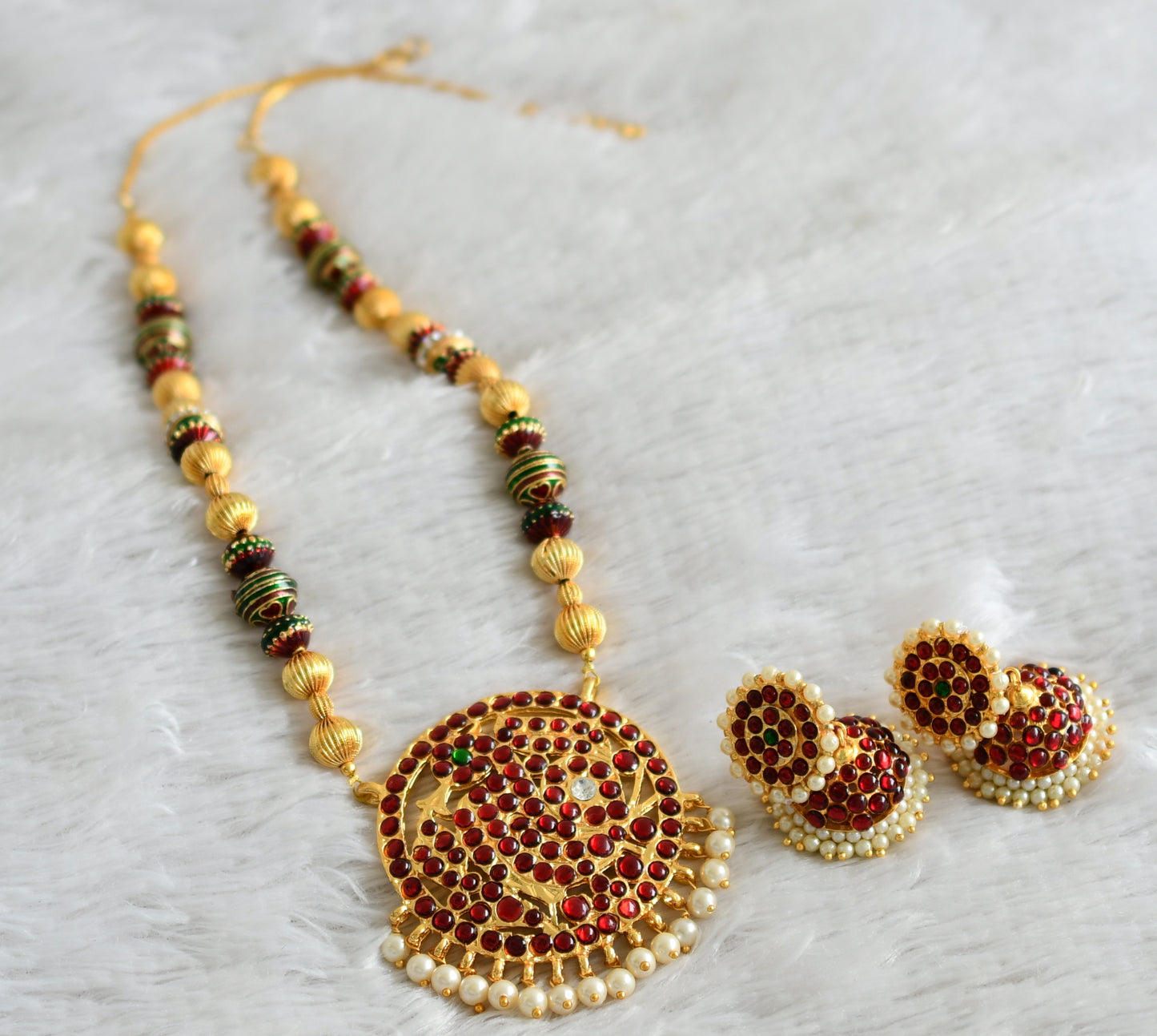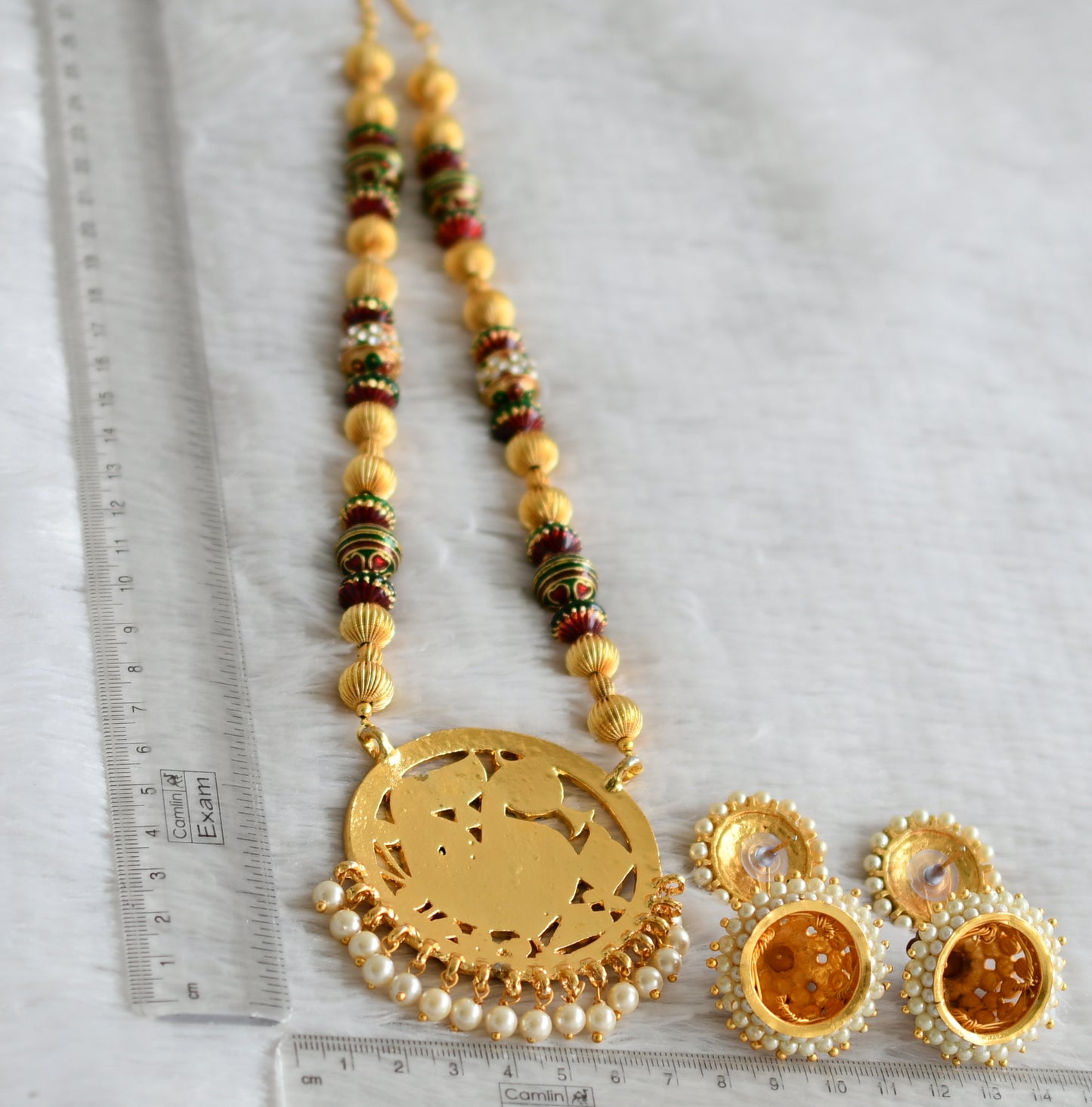 Gold tone Kemp-green Meenakari beaded Long Necklace Set- DJ16916