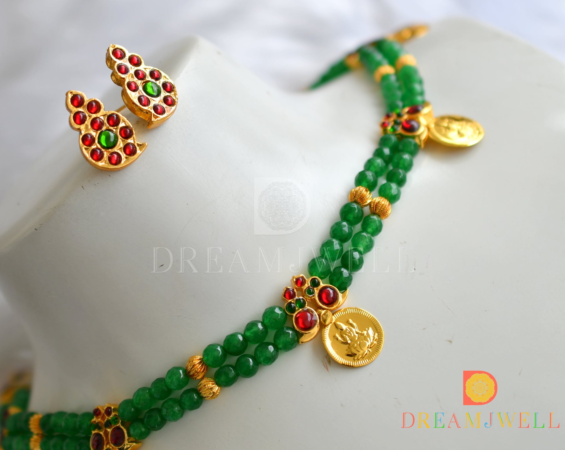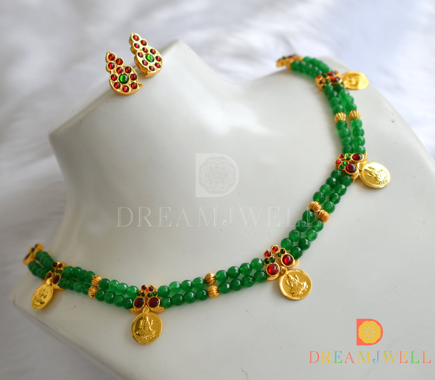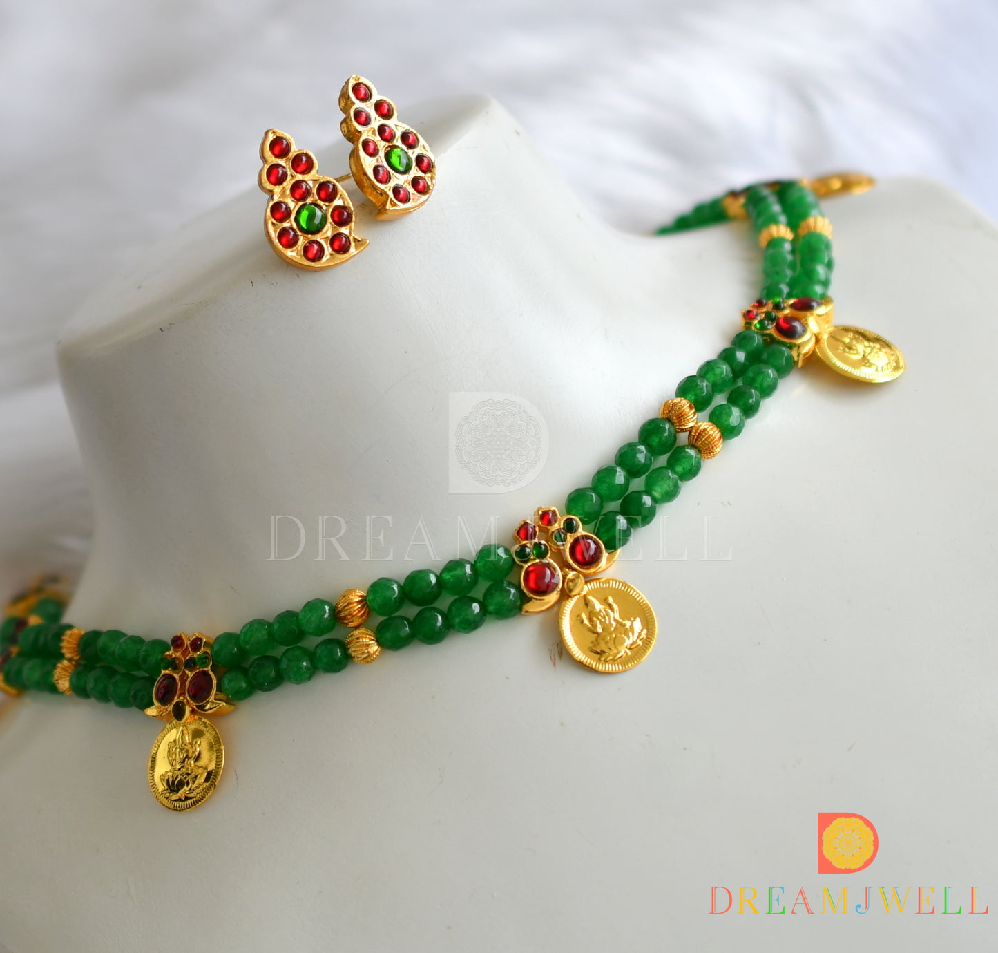Gold tone kemp-green agates Lakshmi coin necklace set dj-23281