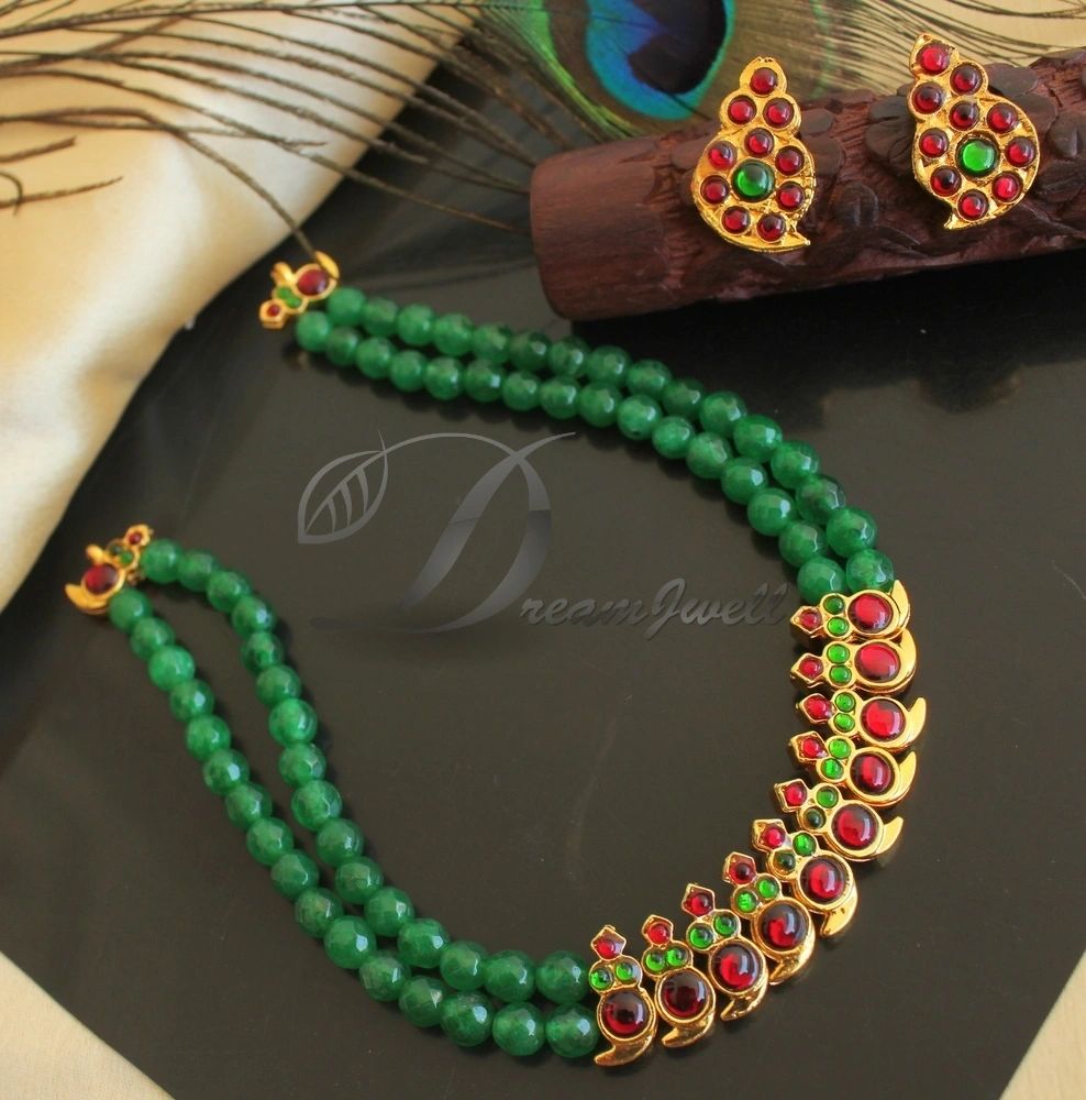 The product includes A pair of Earrings - Length : 2.5 cm , Width : 1.5 cm A Necklace - Length : 12 cm Earrings type - push back Necklace comes with a dori .