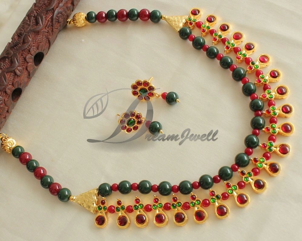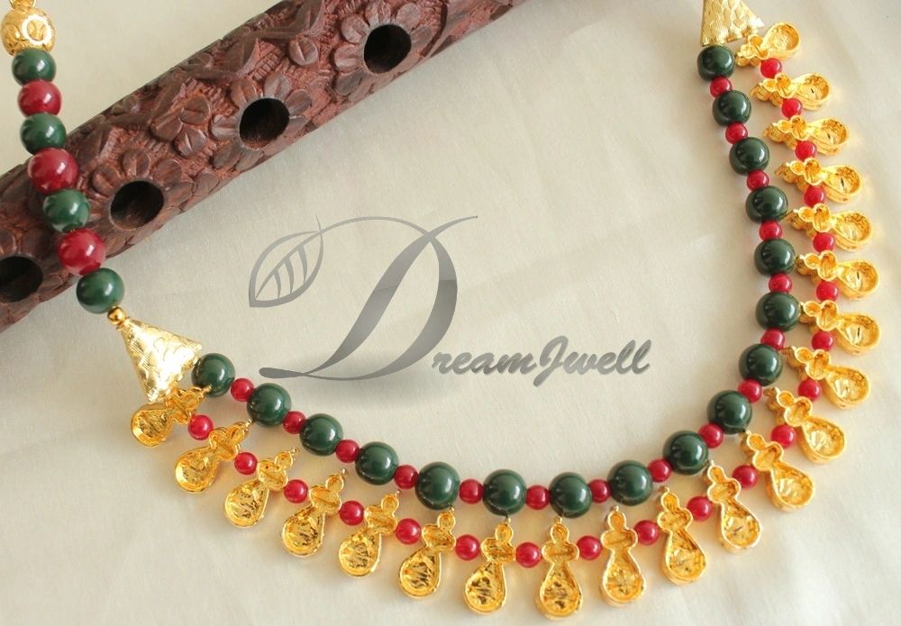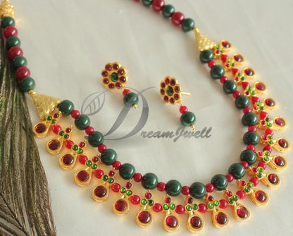 Antique gold tone Kemp-green beaded Necklace Set DJ22115