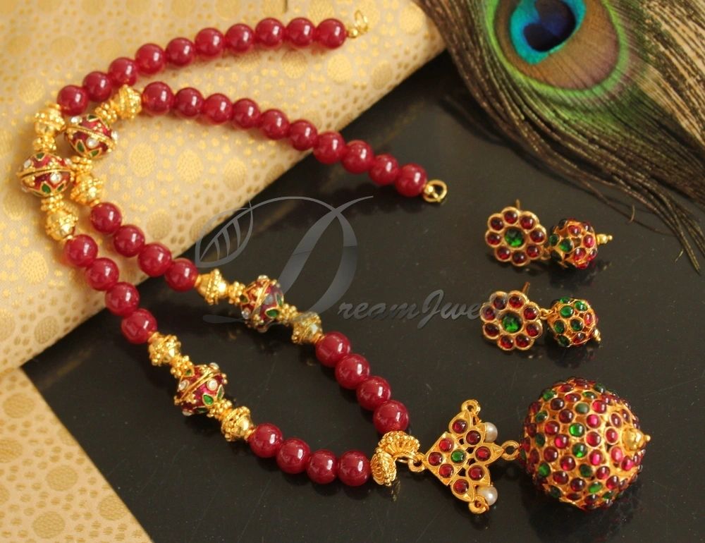 Gold tone Kemp-green Rudhra ball Necklace Set DJ19090