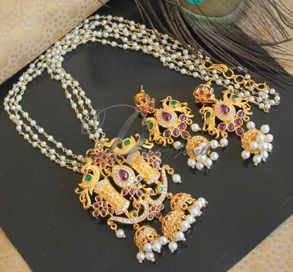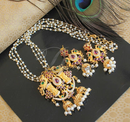 Gold tone Kemp-green Peacock Pearl Chain/Necklace Set DJ22820
