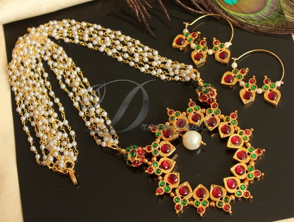 Gold tone Kemp-green Pearl Necklace Set DJ19376