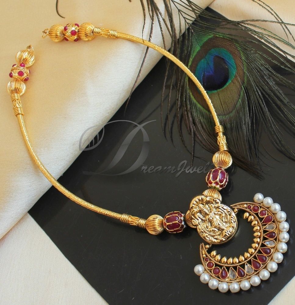 Antique gold tone Kemp Pearl Lakshmi Bali Hasli Necklace DJ22089