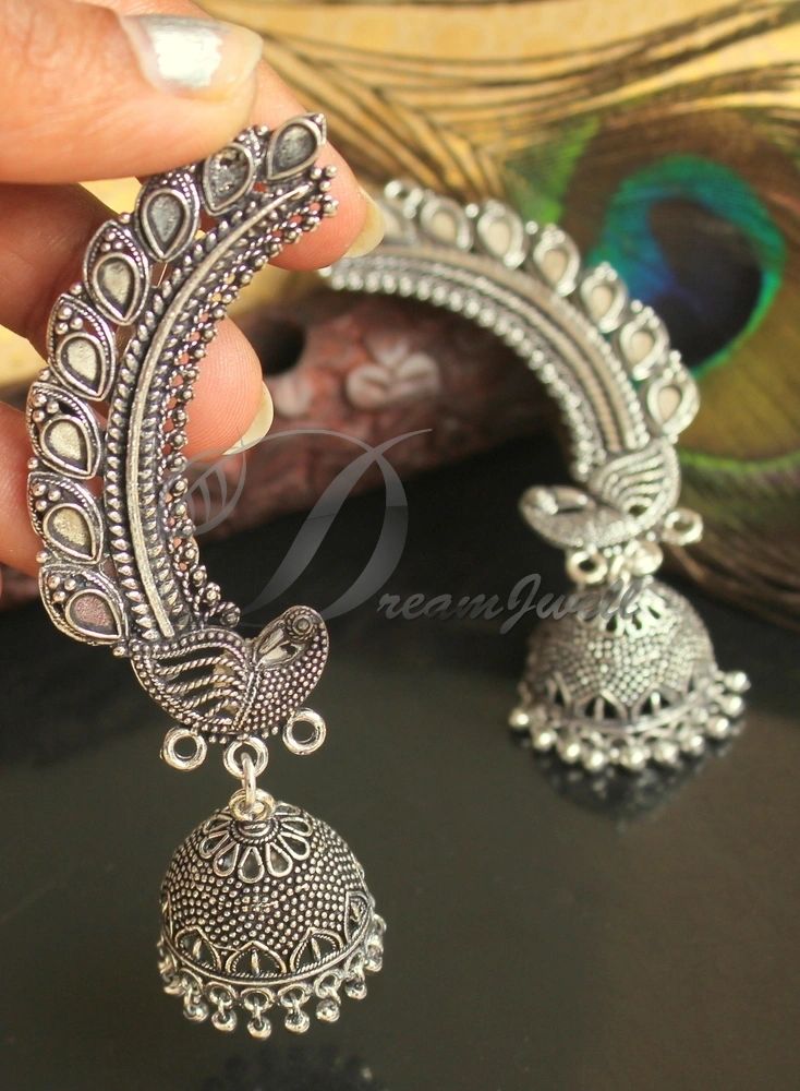 Silver tone Peacock Khanpool Jhumkka DJ21613