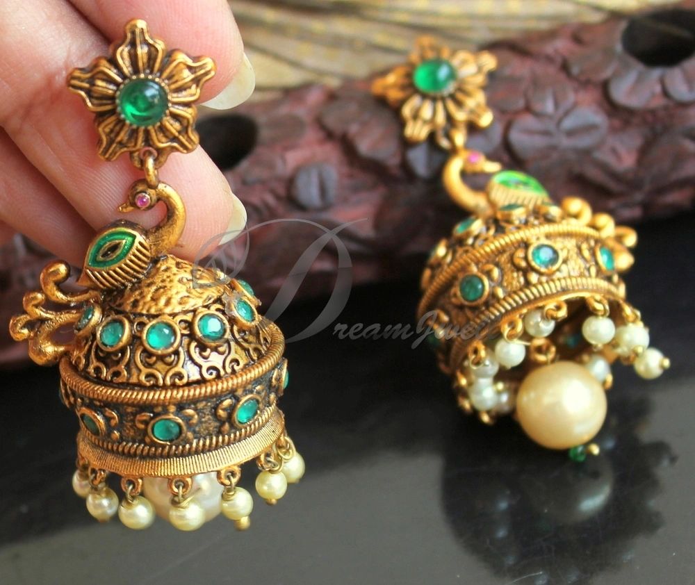 Matte Finish Emerald Pearl Peacock Jhumkka DJ22060