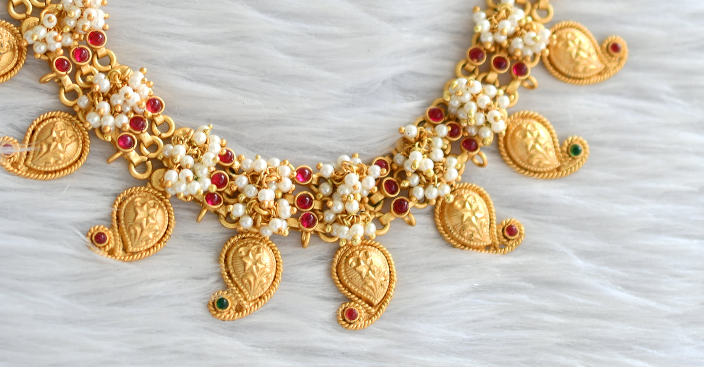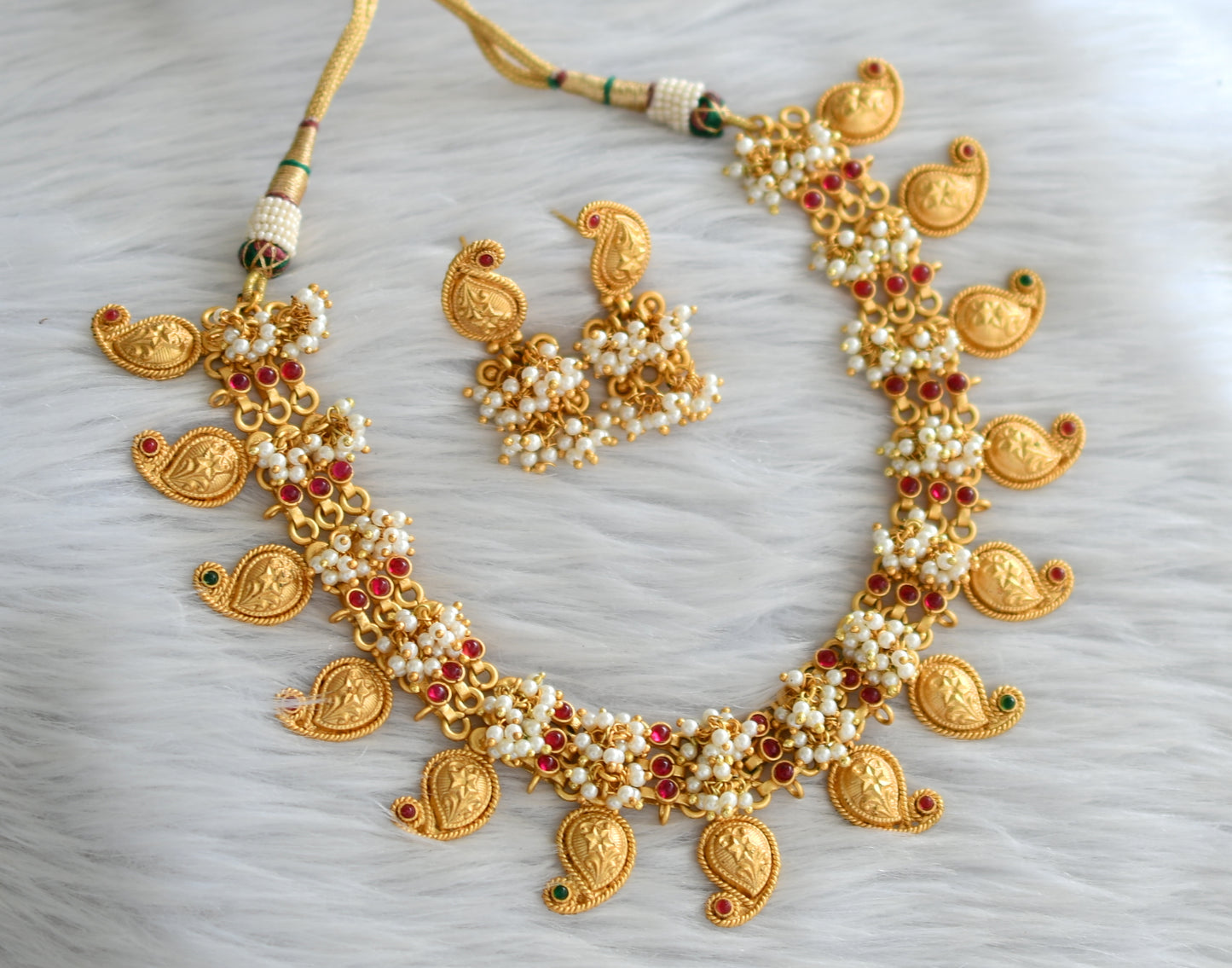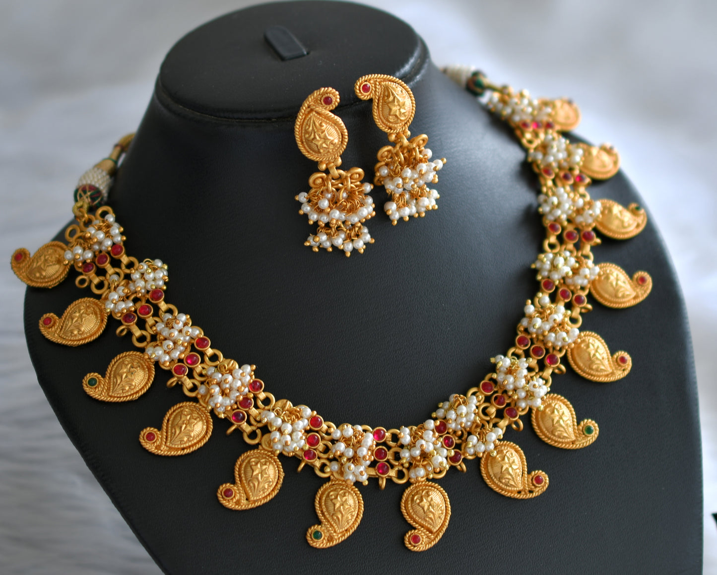 Matte finish pink-green mango necklace set dj-06982