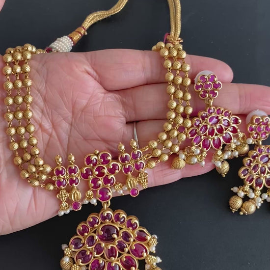 Matte Finish Real Kemp beaded Necklace Set DJ31358