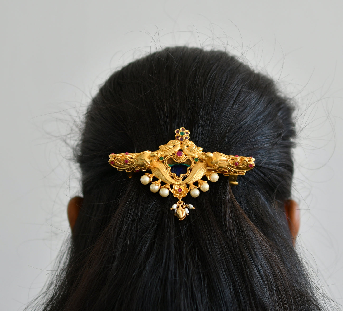 Matte Finish Ruby-emerald Peacock Feather Hair clip - DJ13524