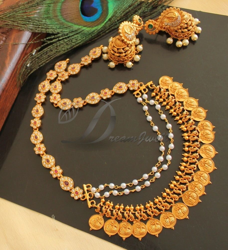 Matte Finish Ruby Pearl Swan Coin Necklace Set DJ24822